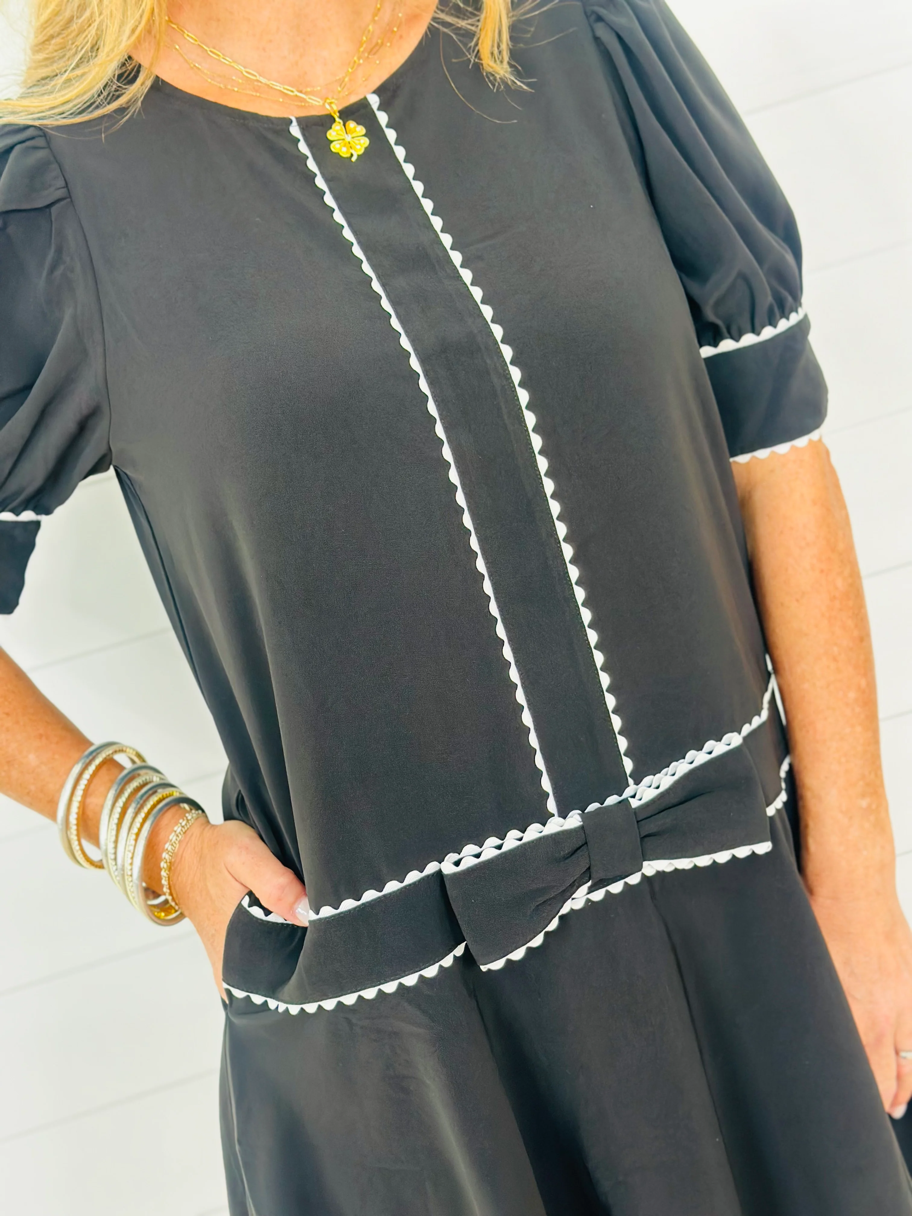 BRIELLE BOW DRESS-BLACK