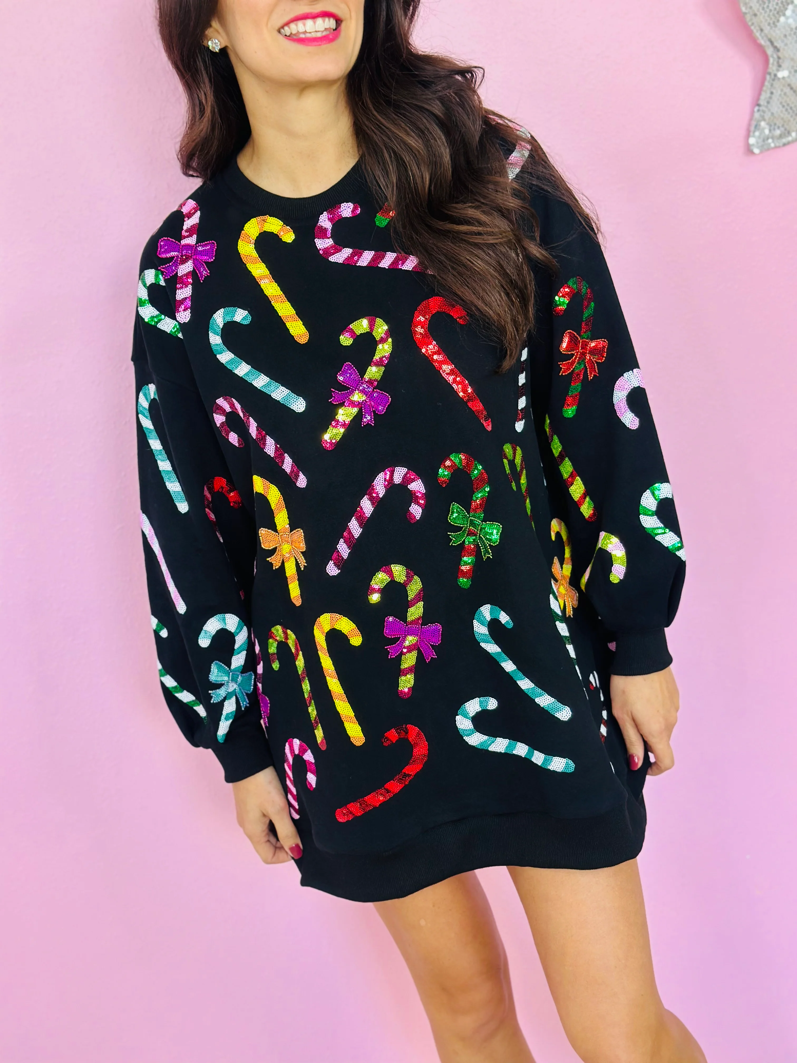 BLACK RAINBOW CANDY CANES SWEATSHIRT DRESS