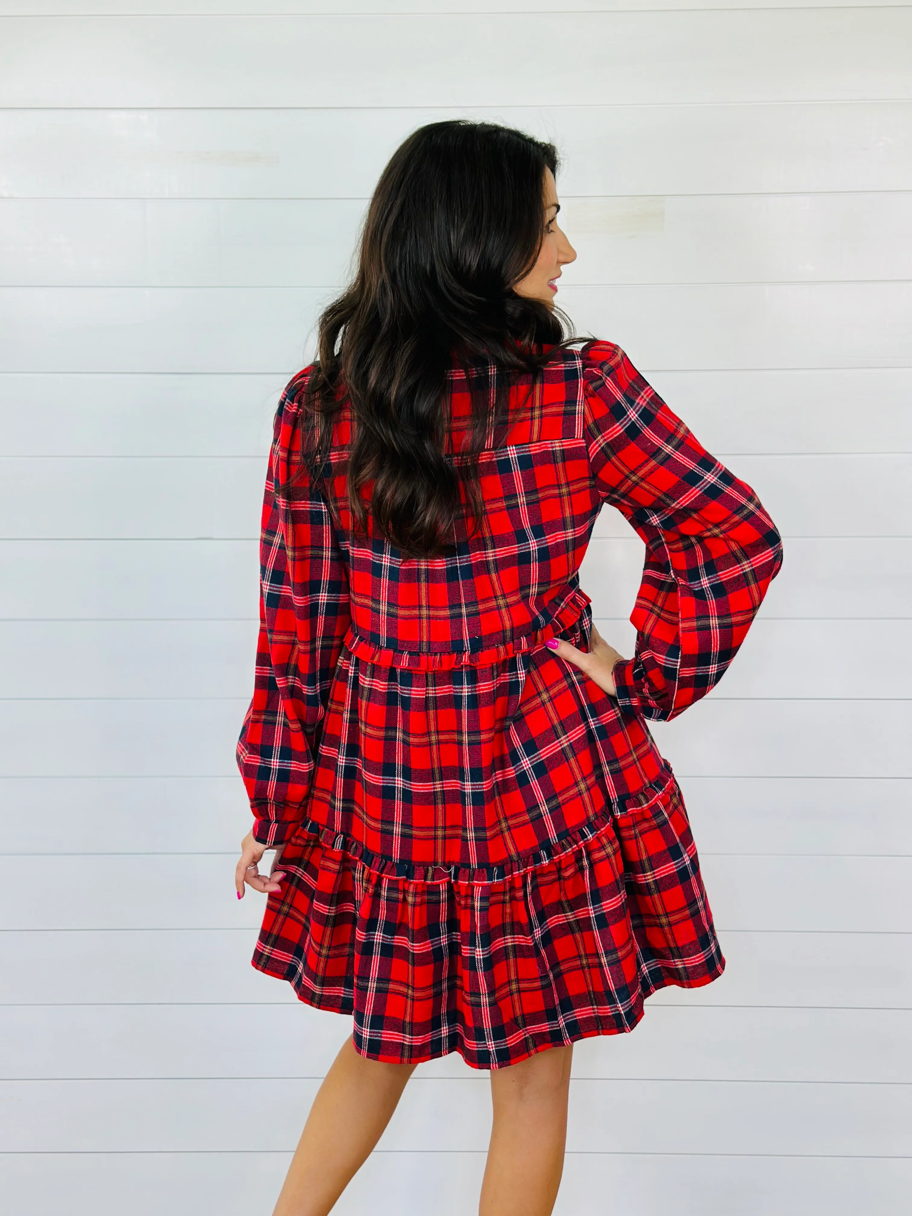 FOREVER FLANNEL DRESS-RED/NAVY