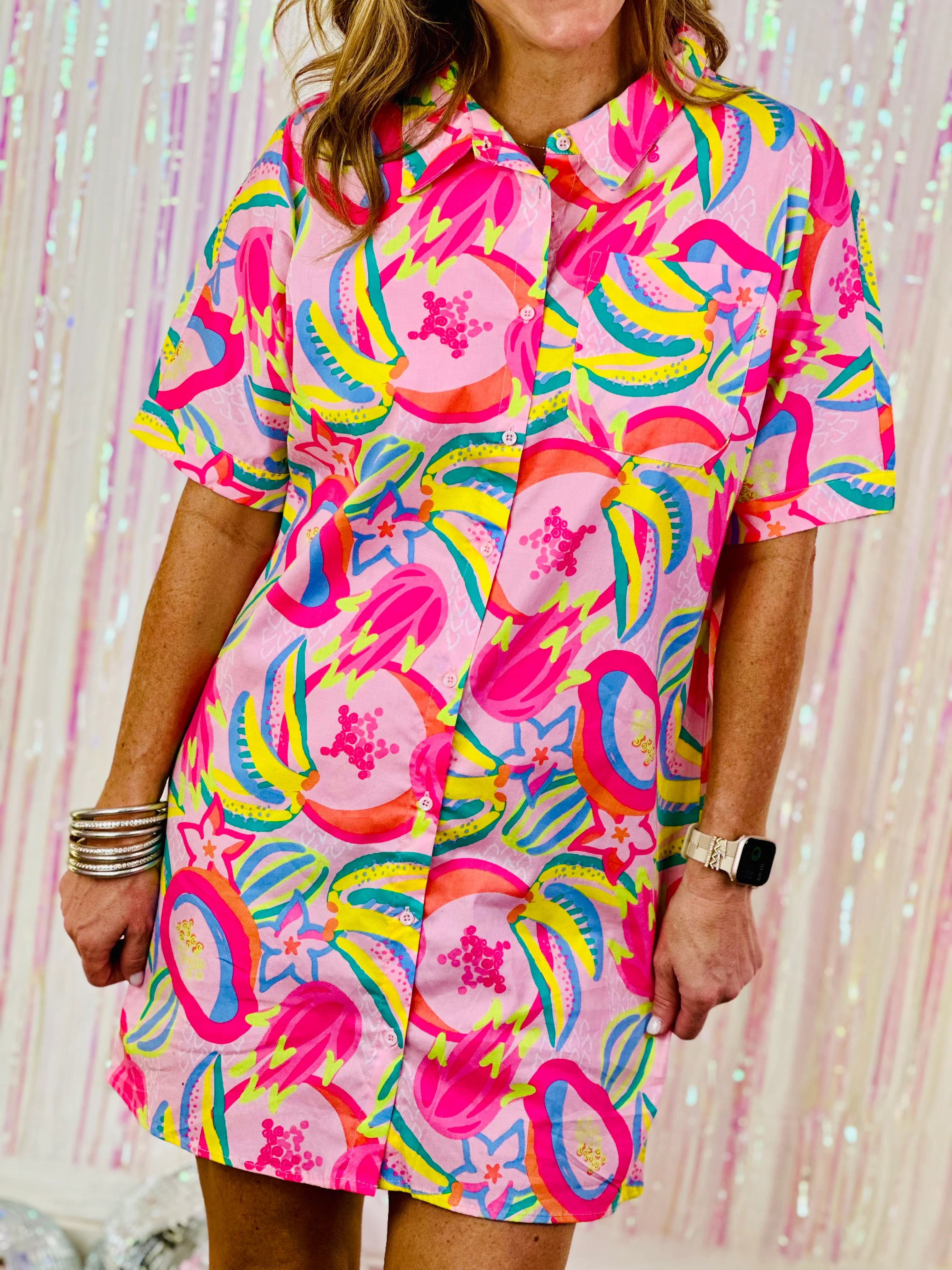 SEQUINED SMILES SHIRT DRESS