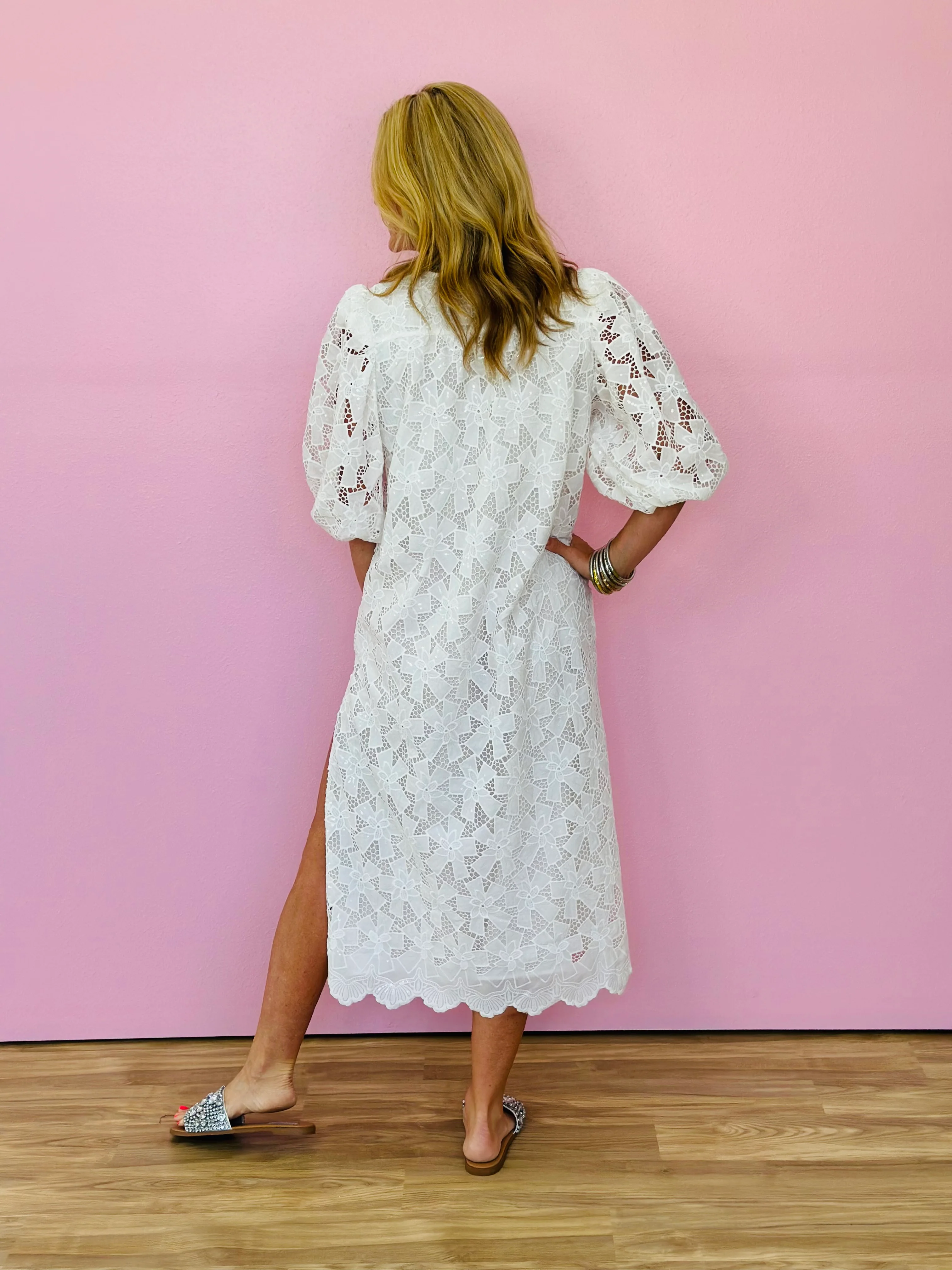 EYELET GAUZE JACKET DRESS