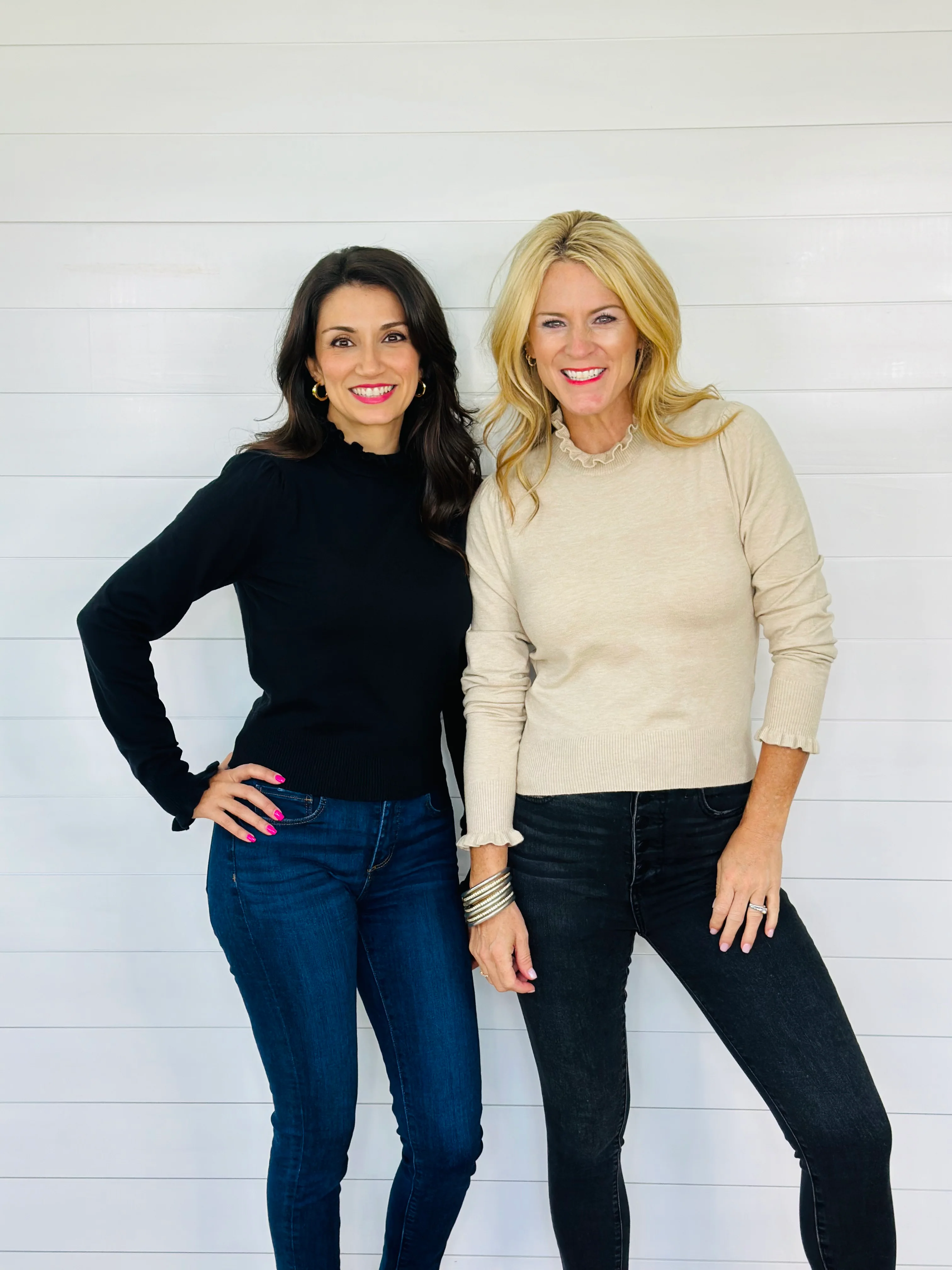 LT BLUE GINGERBREAD HOUSES COLLAR SWEATSHIRT