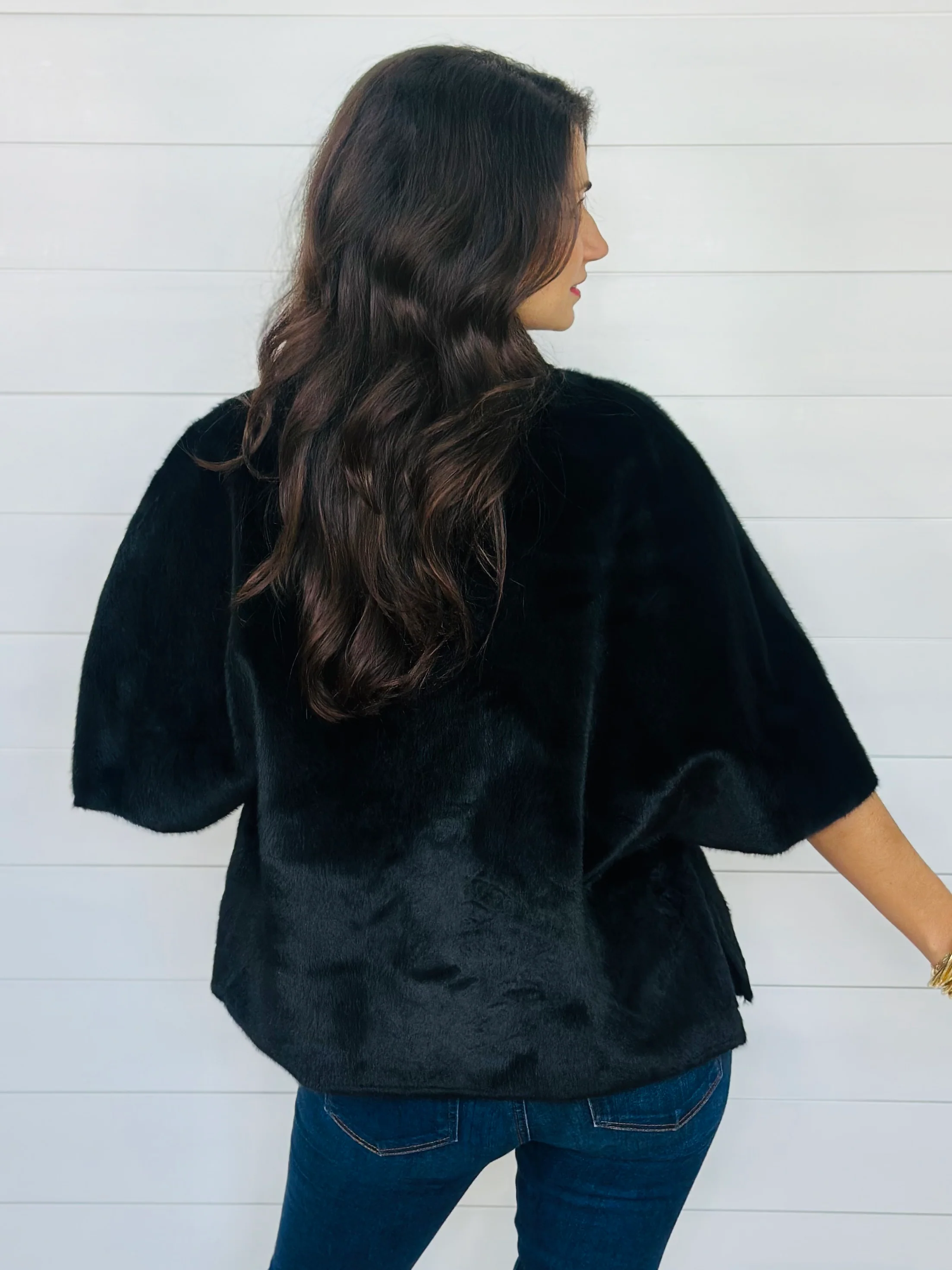 FAUX CAPELET JACKET-BLACK
