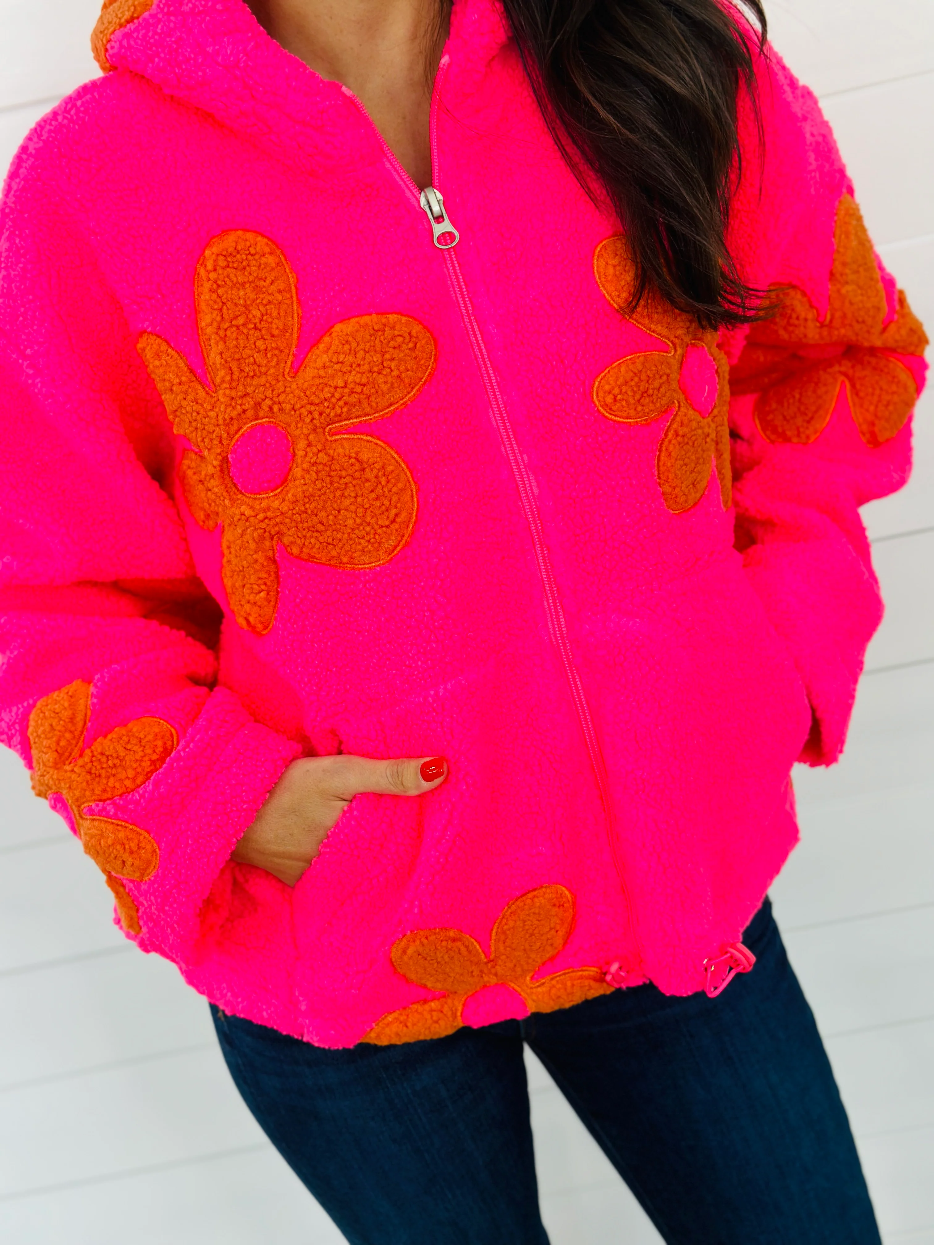 FLOWER POWER JACKET-NEON PINK