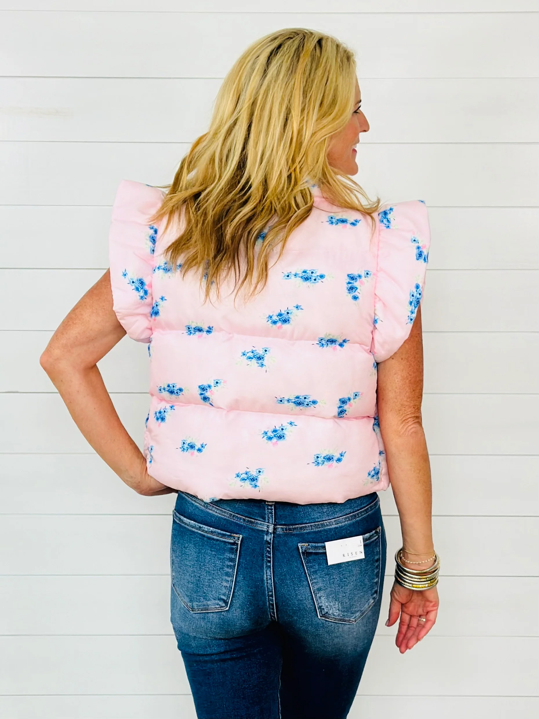 BLUE FLORAL PUFFER VEST