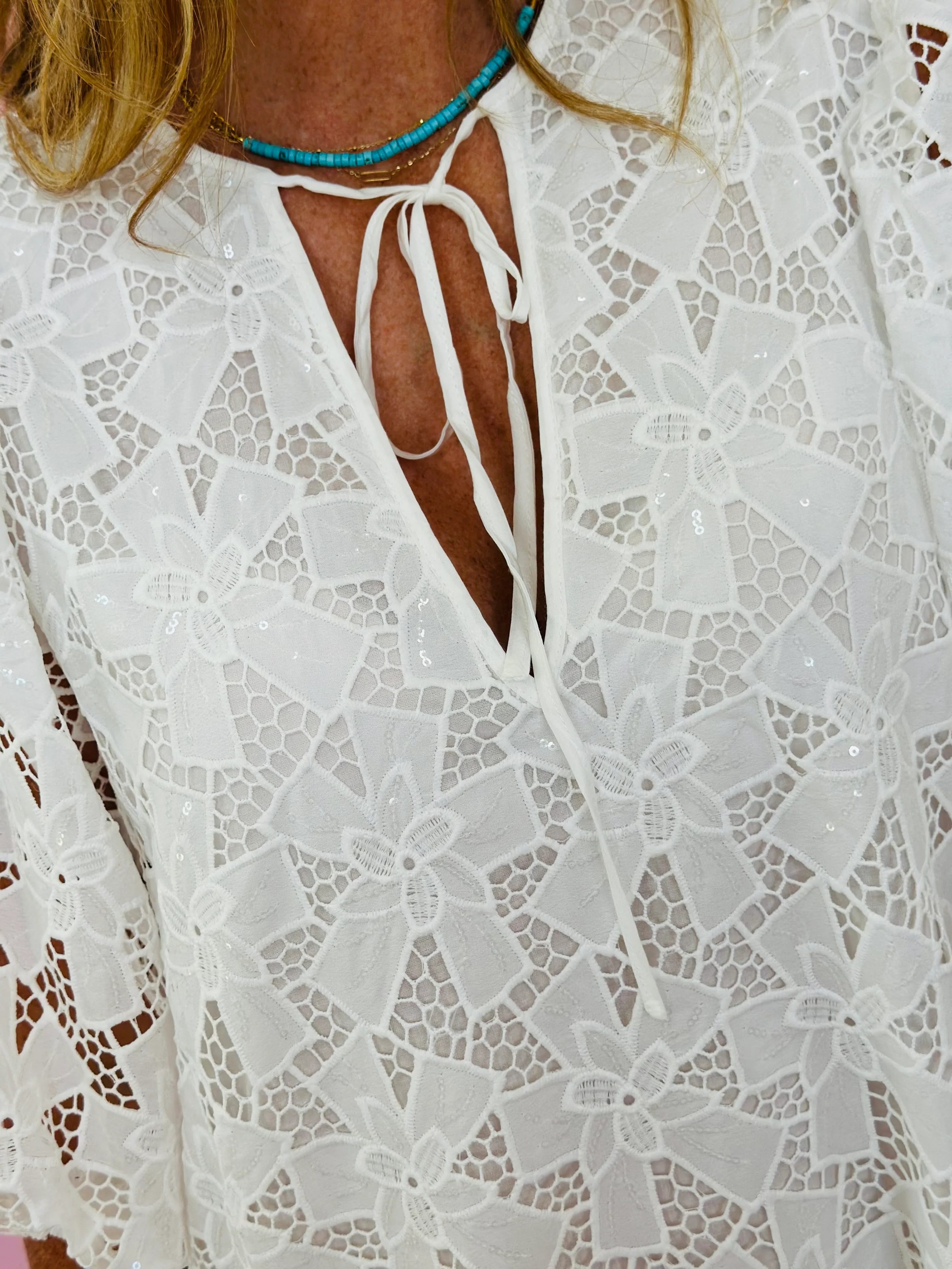 EYELET GAUZE JACKET DRESS