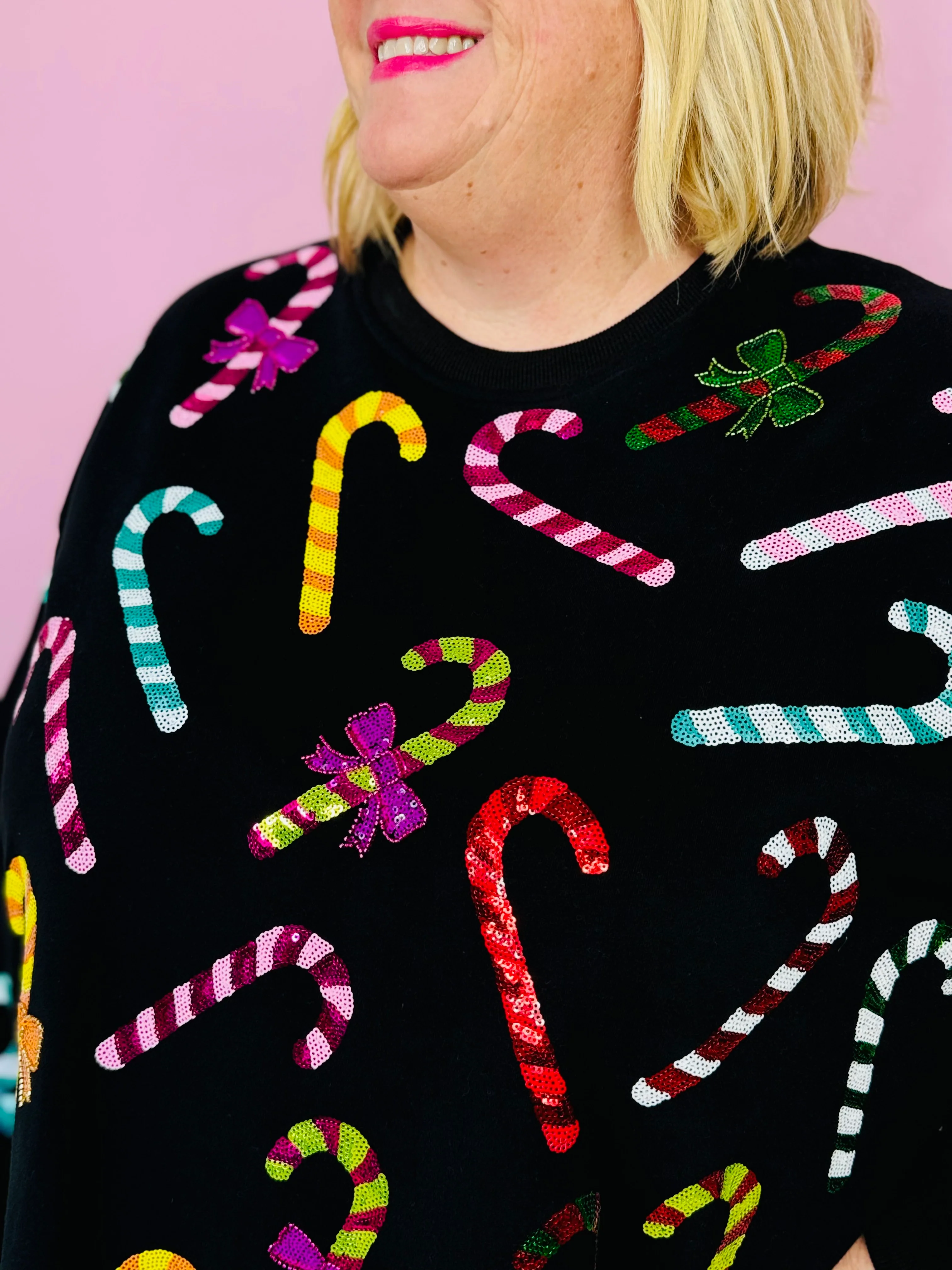 BLACK RAINBOW CANDY CANES SWEATSHIRT DRESS-PLUS