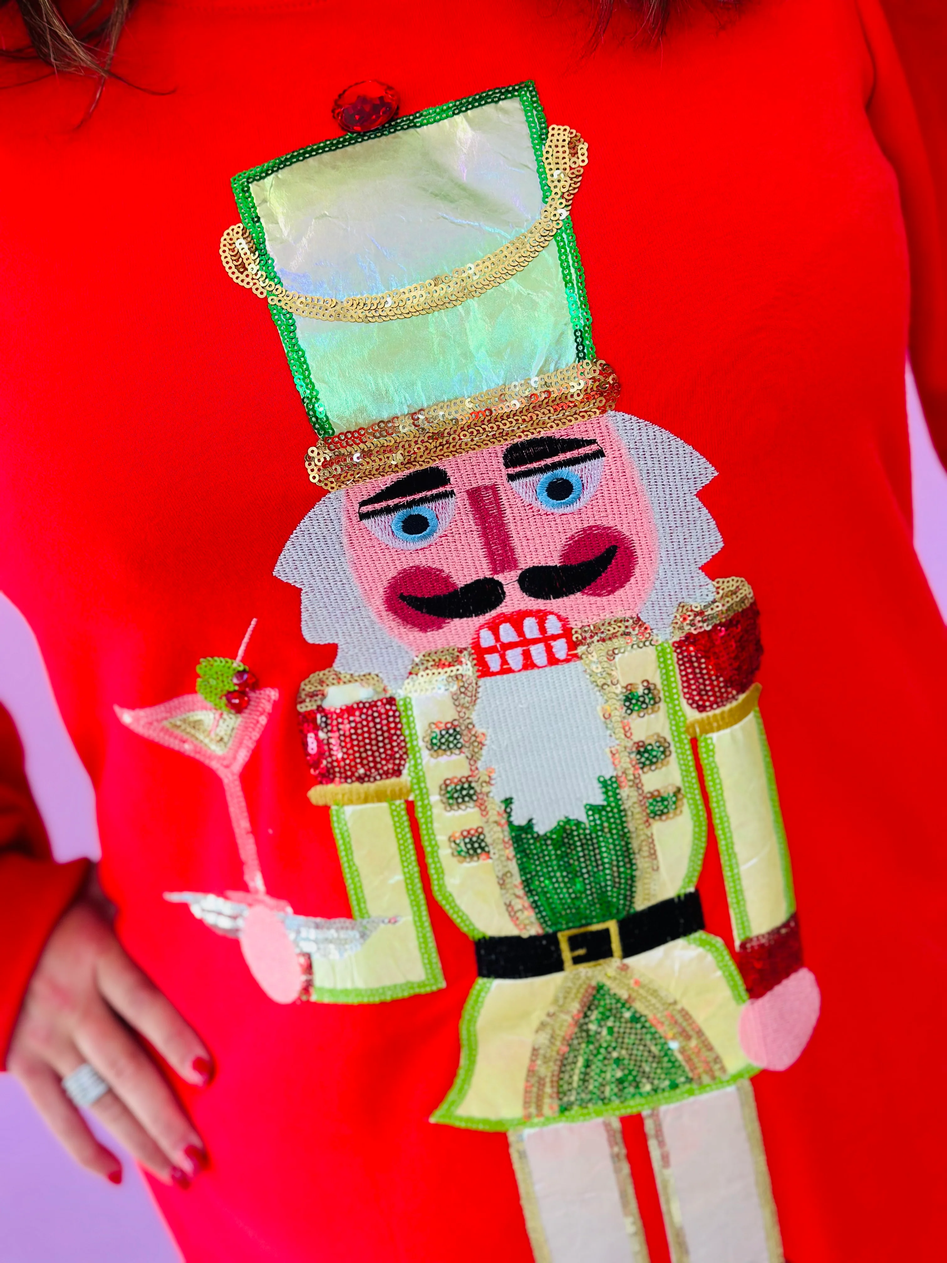 RED METALLIC SANTA NUTCRACKER SWEATSHIRT-PLUS
