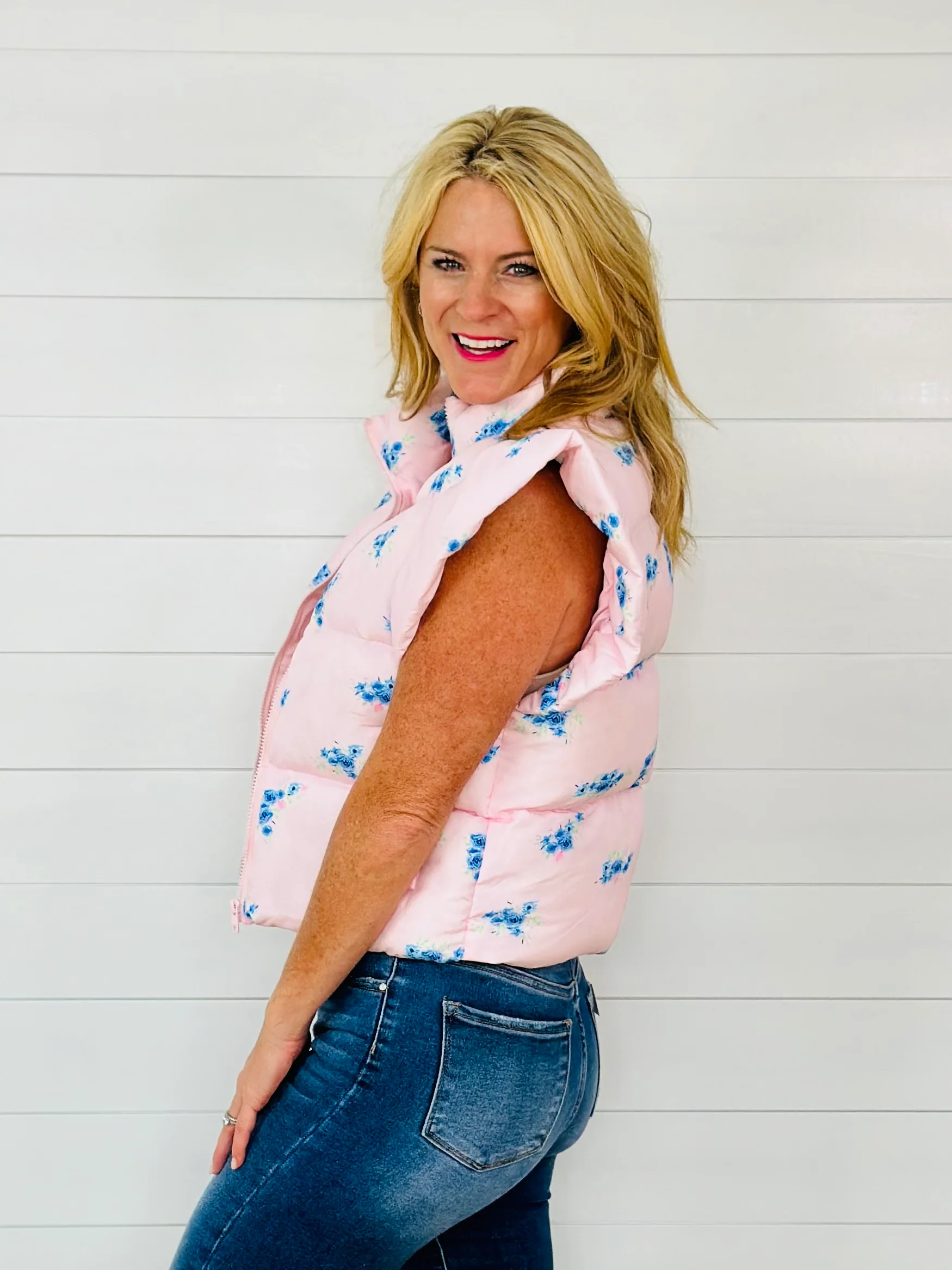 PUFF FLORAL BARN JACKET-FUCHSIA