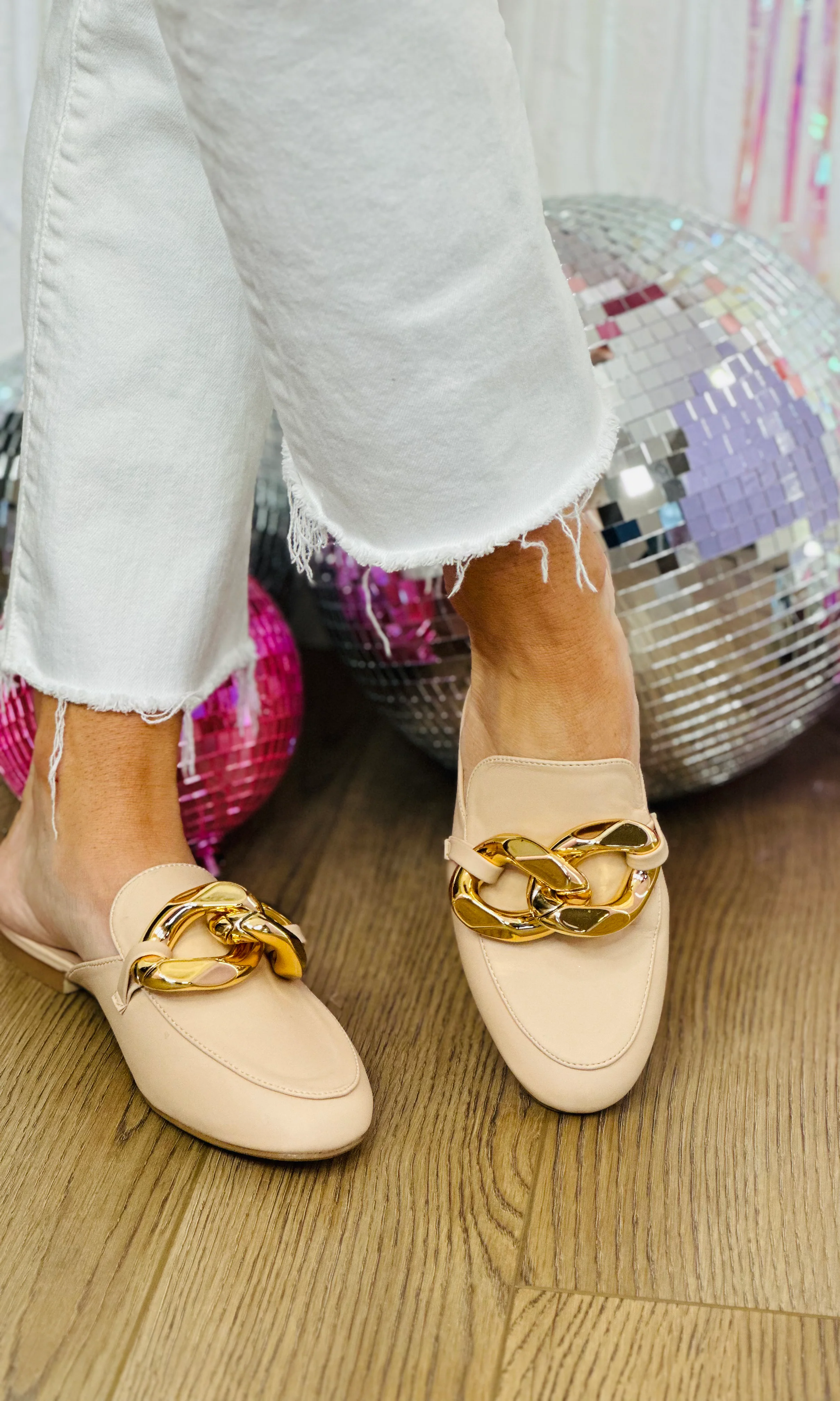 BEADED PINK/GOLD HEART SLIPPERS