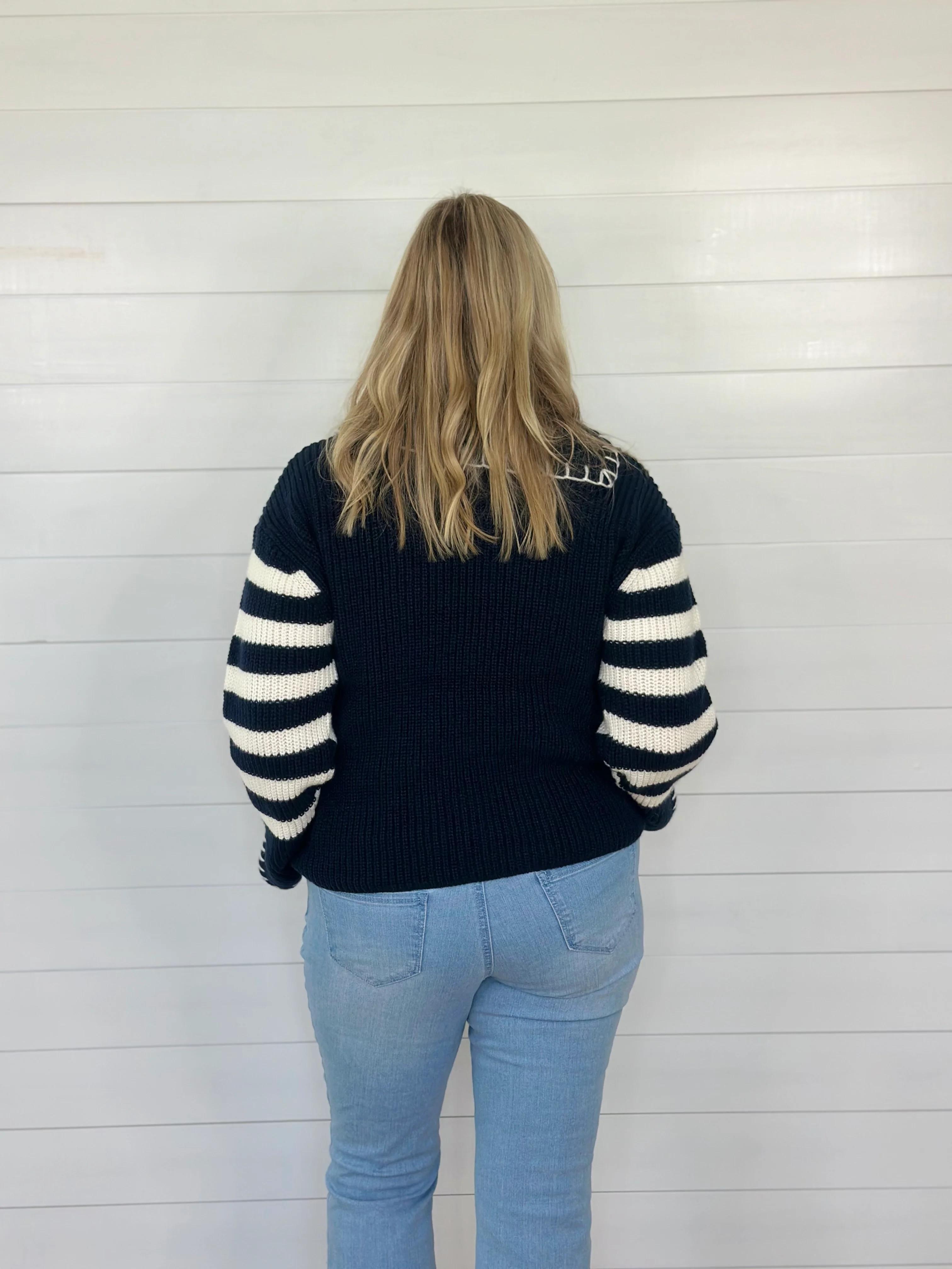 NANTUCKET STRIPE SWEATER-NAVY/WHITE