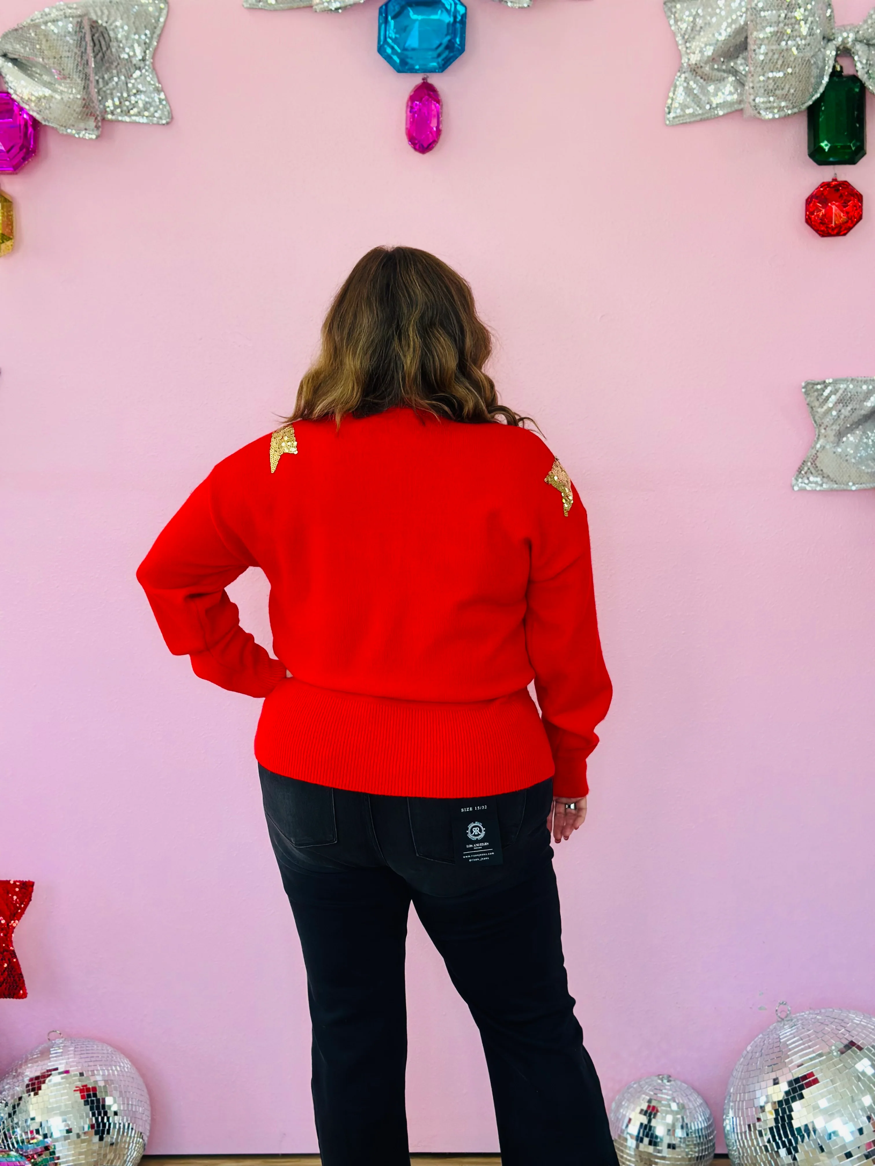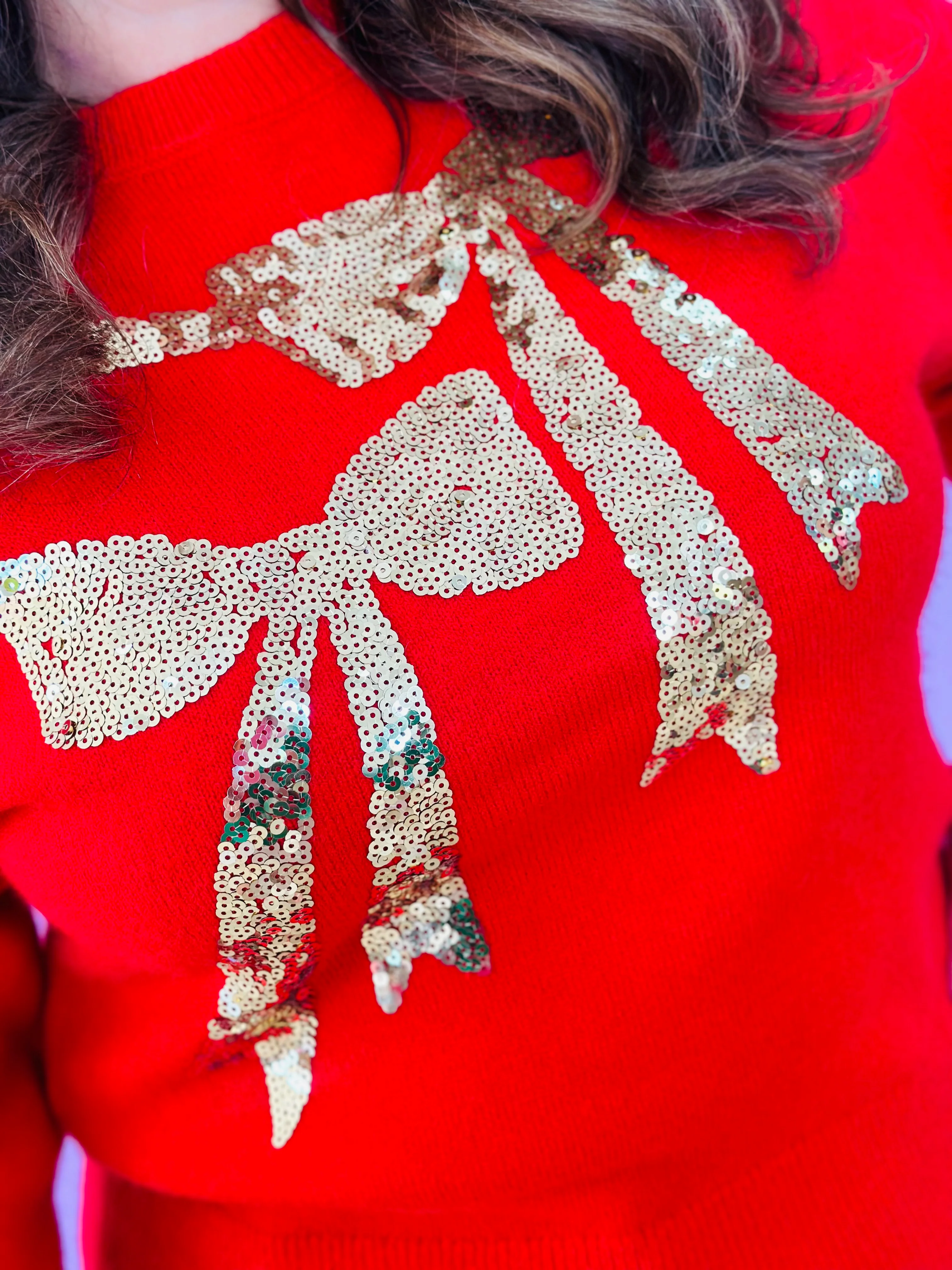 GOLD SEQUIN BOWS SWEATER-RED