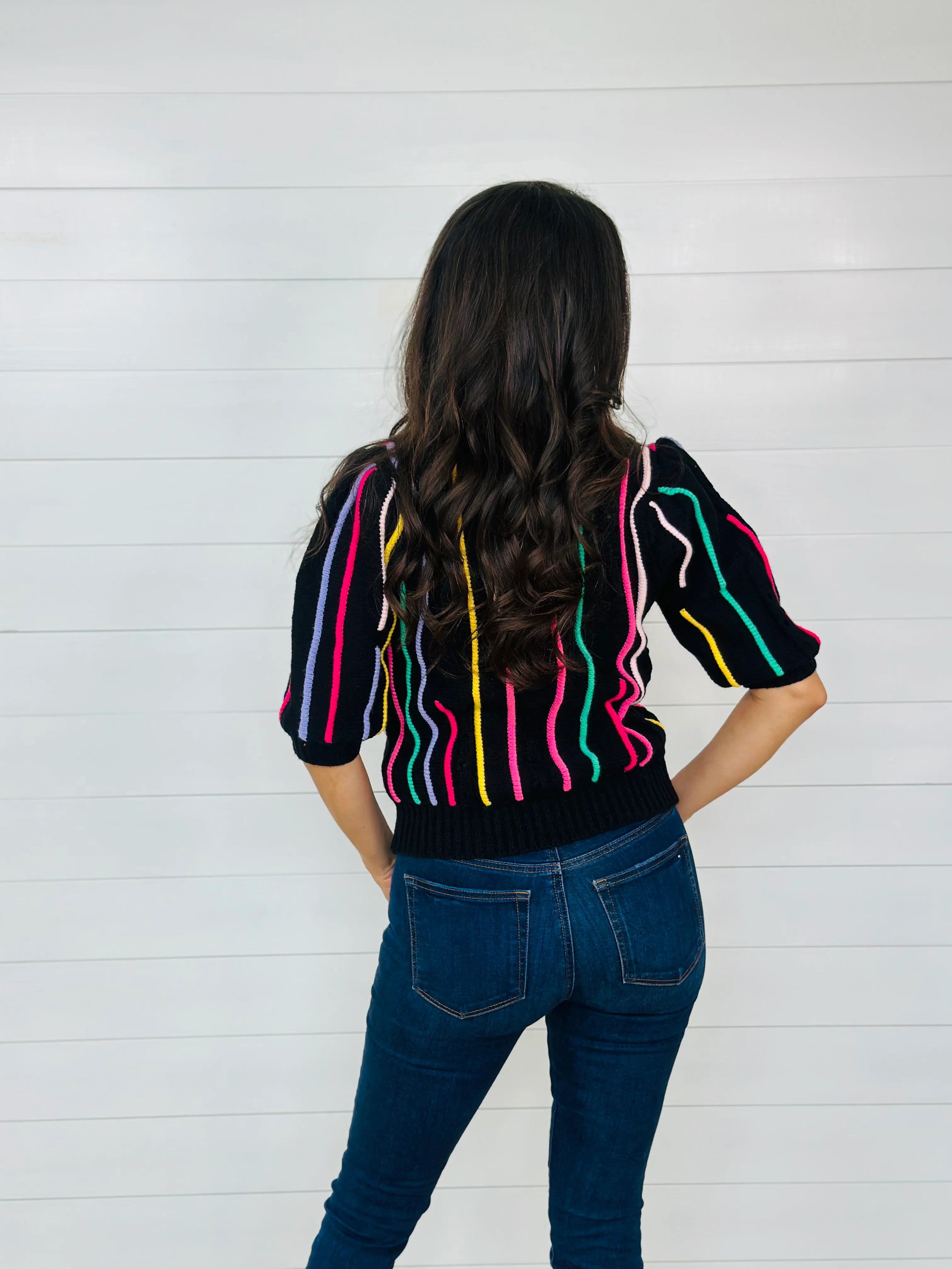 DIAMONDS & PEARLS SWEATER TOP-BLACK