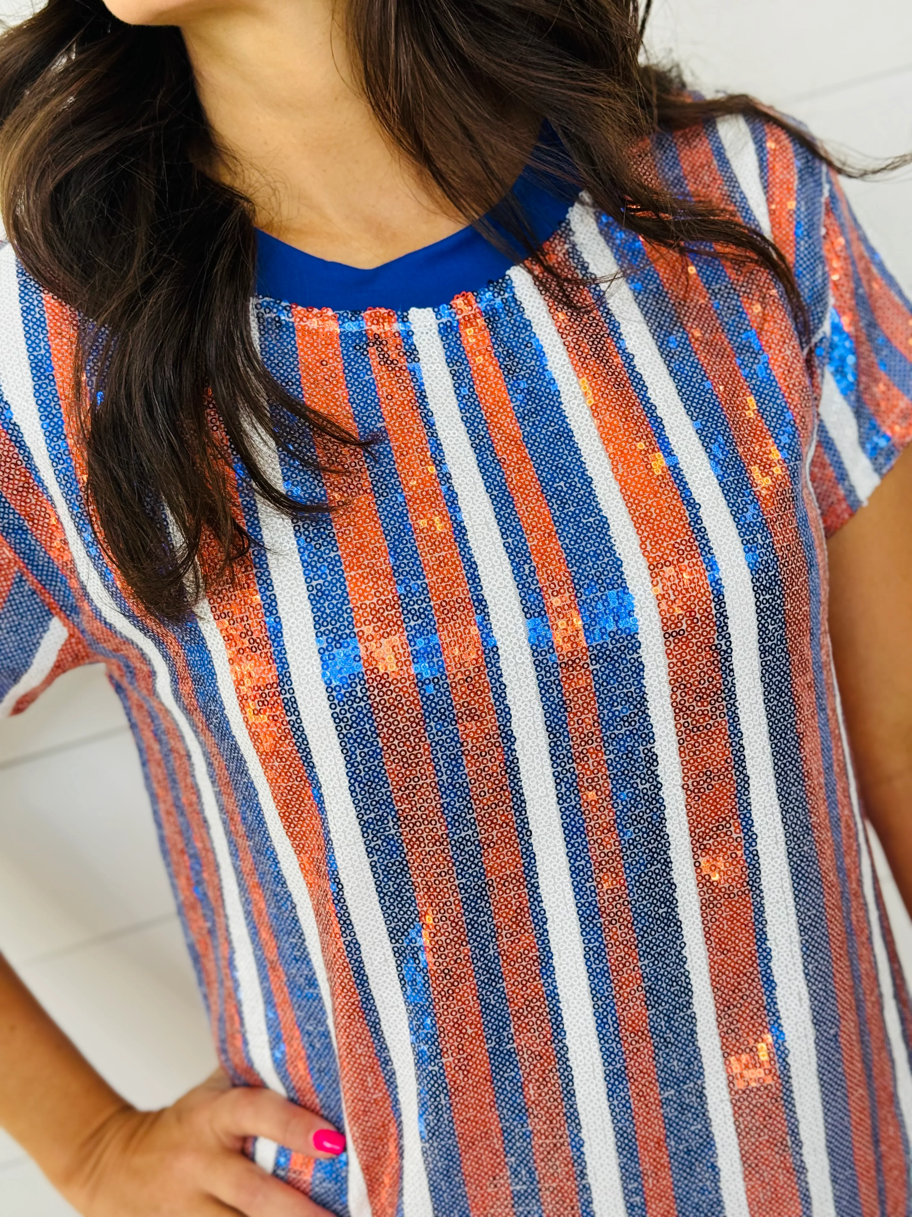 JULIA DRESS-BLUE/ORANGE SEQUIN